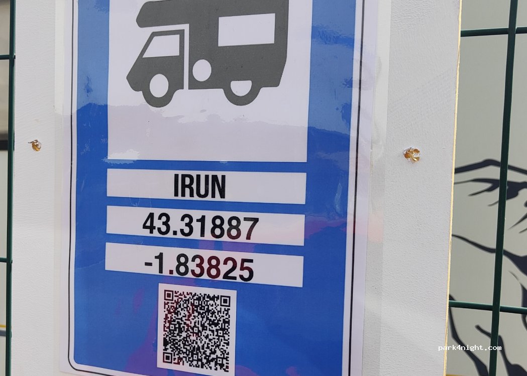 A 10-15 minutos andando de la zona antigua de Hondarribia. También hemos pasado la noche, los sitios están bastante nivelados. Hay que respetar las líneas y no sobrepasar las. Paralelo al parking pasa la carretera general, recomendamos estacionar al lado contrario a la carretera (dejando la cama hacia la acera).