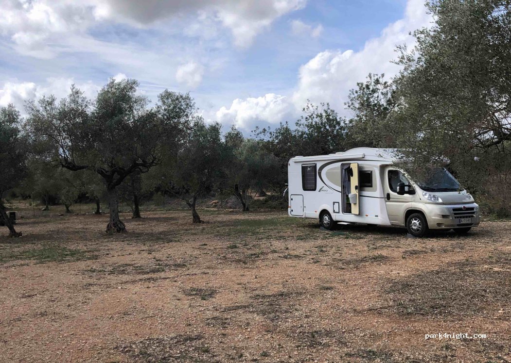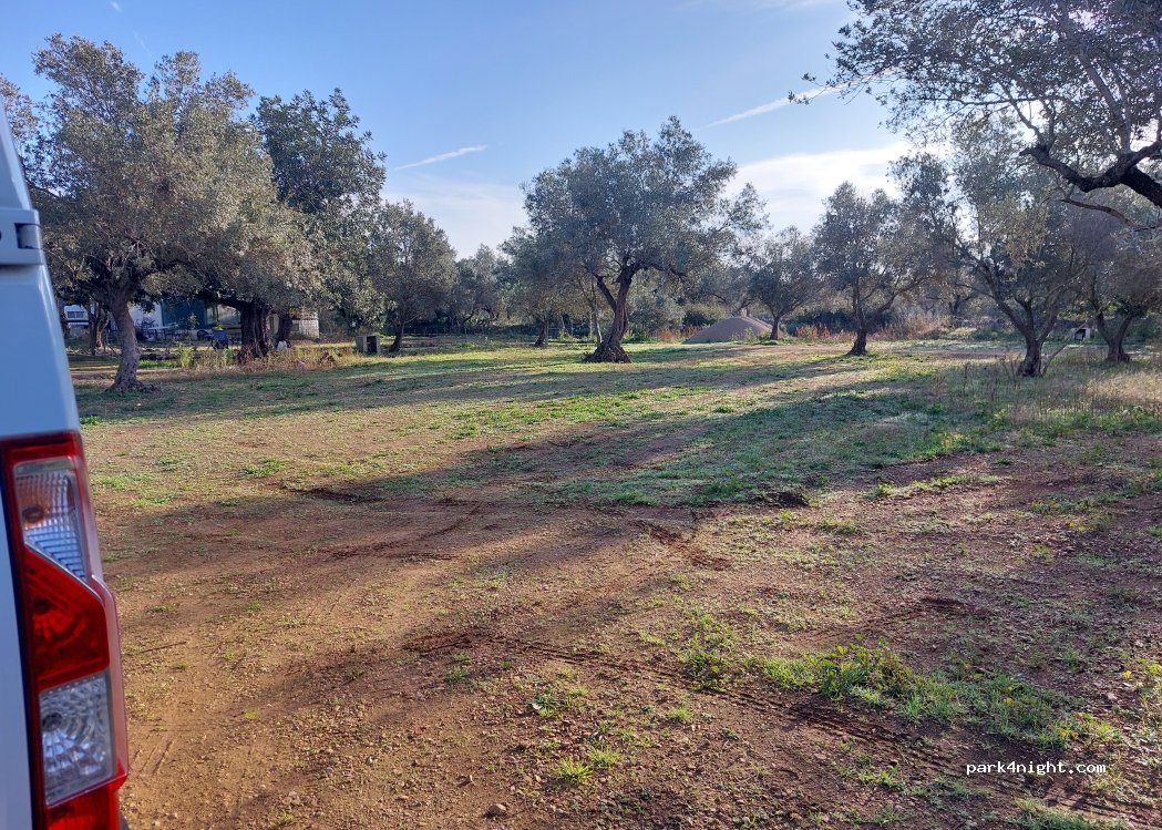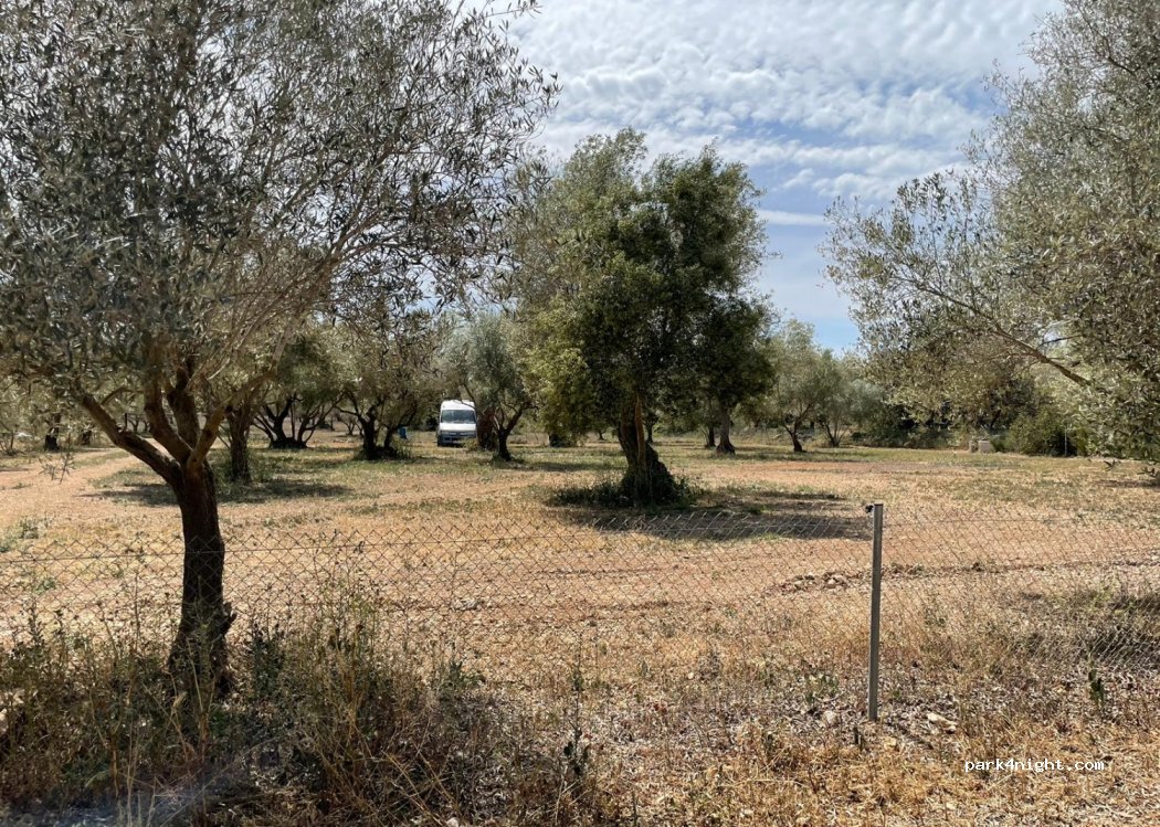 Little hidden, right next to a picknick zone, you can park between the olivetrees on private property.