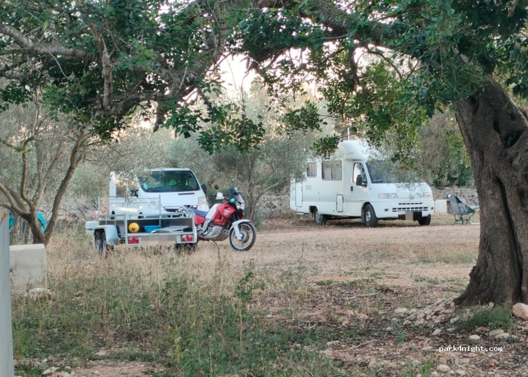 Zèèr mooie , geëffende , camperplaats tussen de olijfbomen , rustige omgeving en toch nabij het dorpje . Uiterst vriendelijk ontvangst door de charmante eigenaresse die behulpzaam is . Een uitvalbasis voor vele steden en prachtige dorpjes in de buurt , en ook niet te ver van het strand , waardoor het een ideale plek is om te overwinteren. Ik ga er zeker nog meerdere malen naartoe rijden .