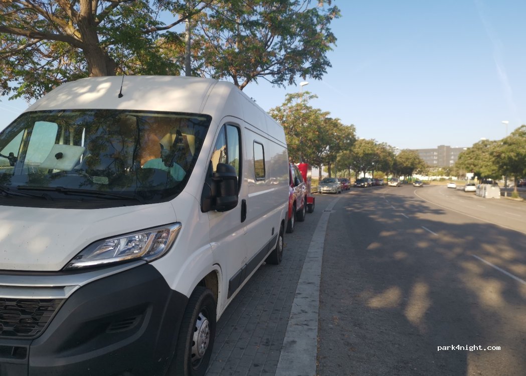 Parking strip located directly after the expressway exit. Approved up to 5.5 tons. No extras, but enough space for longer cars. Brightly illuminated. Now and then learner drivers who practice parking. Street is noisy, but it feels safe.