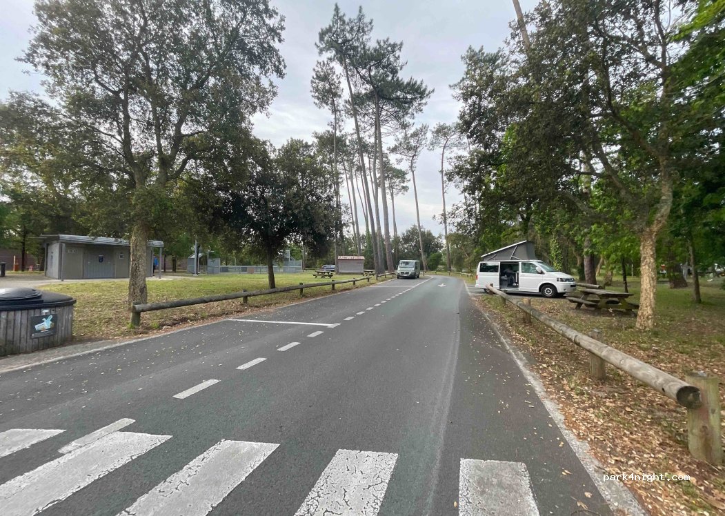 au calme . prendre à gauche le long du mur anti bruit et contourner le bloc sanitaire. il y a qq places en longueur pour CC