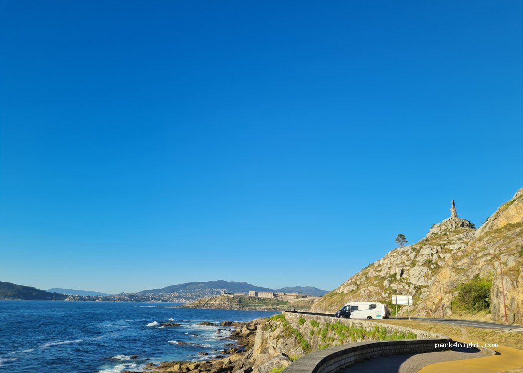 Wir haben unser Camper für einen Tagesbesuch in Baiona hier parkiert. Hier kann auch direkt die Virxe da Rocha besucht werden. In ca. 1 km Fussweg erreicht man auch schon Baiona. Am Abend haben wir uns aufgrund der Aussicht und der Lage dazu entschieden auch hier zu übernachten. Klar ist gleich die Strasse nebenan, aber das hat uns nicht gestört, wir haben sehr gut geschlafen.