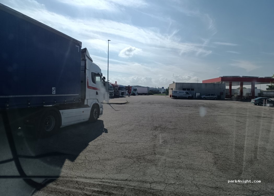 Gas station, but with parking for trucks, if it is to sleep and continue on the road and fill up with diesel it is very good, it is quiet and there is a good bar-restaurant even if it is closed at night.