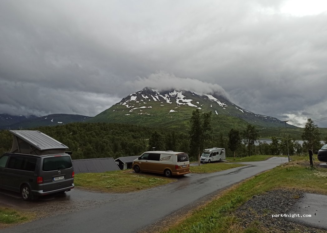 Terrassenförmig angelegter Platz mit schöner Aussicht auf die Berge. Leider direkt an der E6 gelegen. Als lauschiges Plätzchen würden wir ihn nicht bezeichnen. Sanitär nicht neu, aber gepflegt und sauber. Für einen Zwischenstopp zu empfehlen.