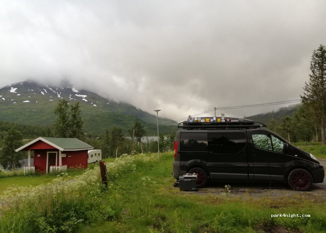 Ein wunderschöner Ort direkt an der E6. Wir hatten vorher angerufen und uns wurde ein Parkplatz von Schnee freigeräumt. 250Kr für die Nacht, Abreise bis 15 Uhr. Voller Zugriff auf Badezimmer inkl. heiße Dusche und Waschmaschine mit Trockner. Wir sind mehr als begeistert :)