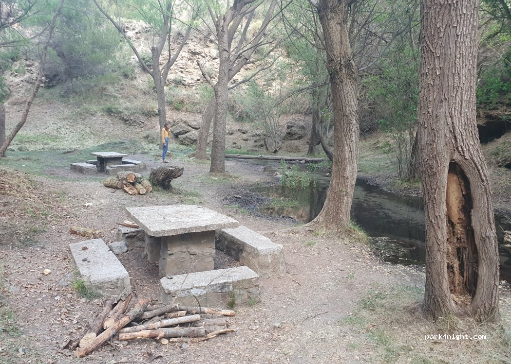 Beautiful calm spot at 1200m elevation, not far from Granada. We parked near the end of the path about 500m after the Boy Scout building, there are picnic tables, a little river, and the natural water fountain is just after this spot, at the end of the path (follow up the river). Would not recommend for any vehicle bigger than a traffic van as the path is narrow and has a few pot holes :)