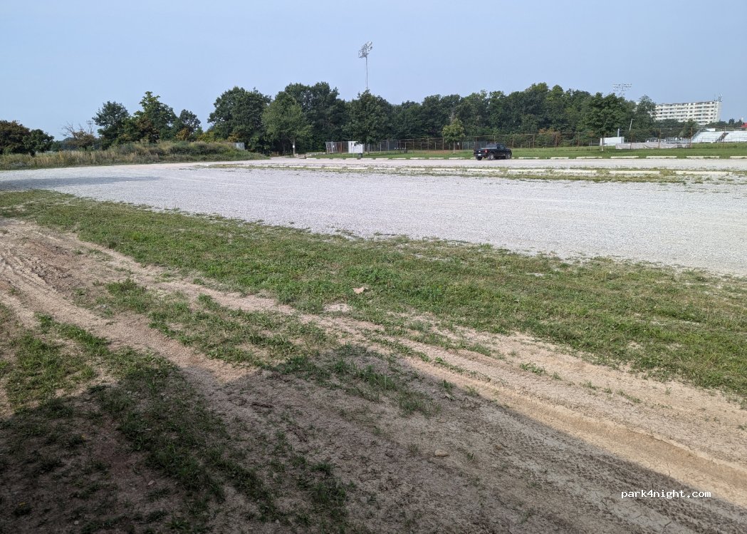 Big parking lot with lots of privacy behind the sports field, near a half-pipe. Entrance is hidden near where Mowhawk meets Mountain Brow. Very dark, quiet, and secluded. Perfect for a one night stay in your vehicle.