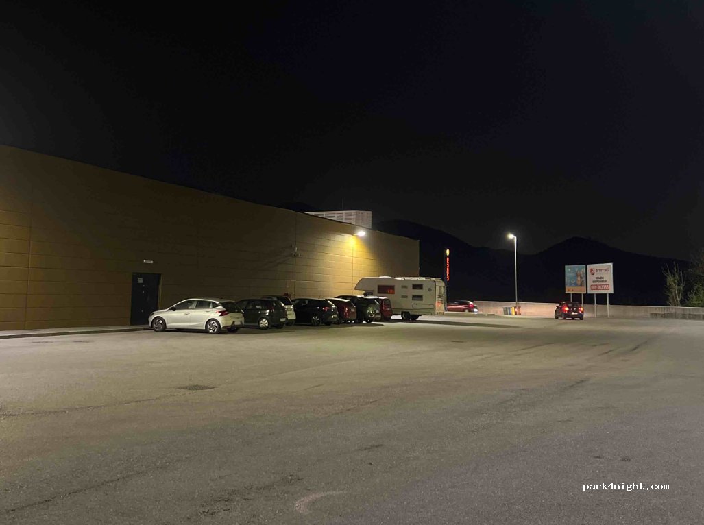direkt am Einkaufscenter. 600 m von der Autobahn. Beleuchtet ab 22 Uhr ruhig für die Nacht. Top um eine Nacht zu stehen und dann weiterzufahren!