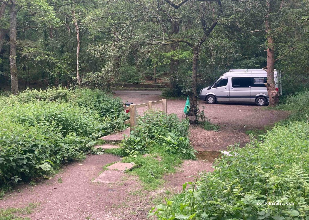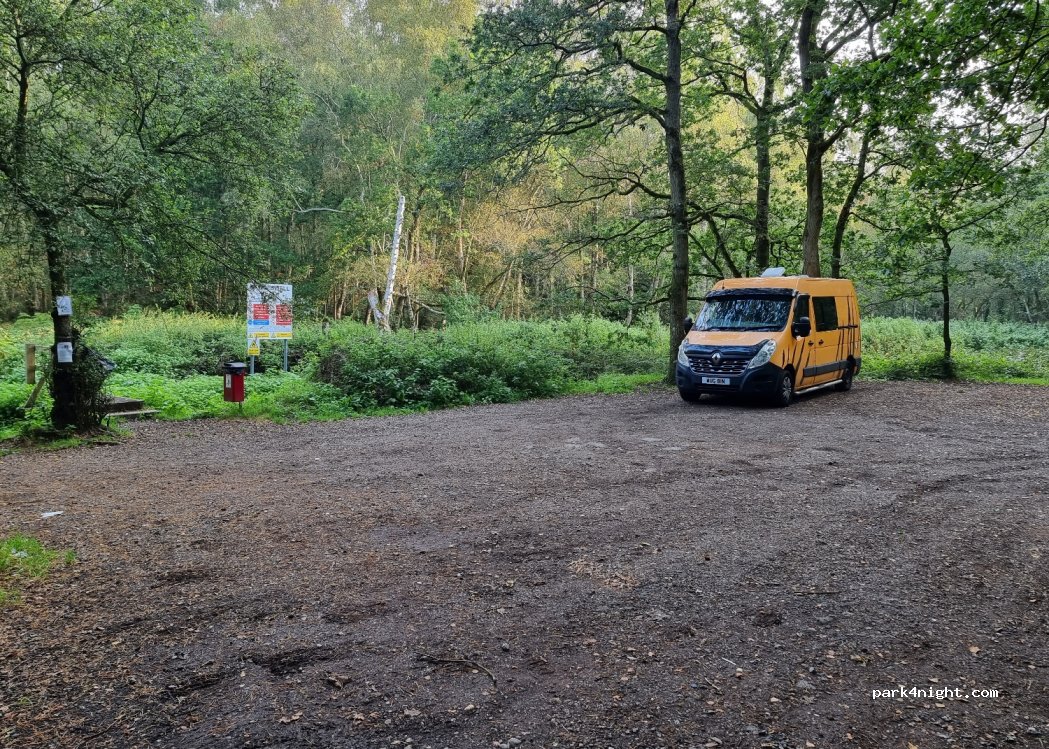Quite a busy carpark with dog walkers. No sign's saying no overnight stopping. Beside a busy road, with traffic between 5.30-22.00, the occasional vehicle through the night. No phone or TV signal, shrouded in tree's occasionally a twig hit's the van roof if windy, it is pretty flat. I was the only van there when I stayed.