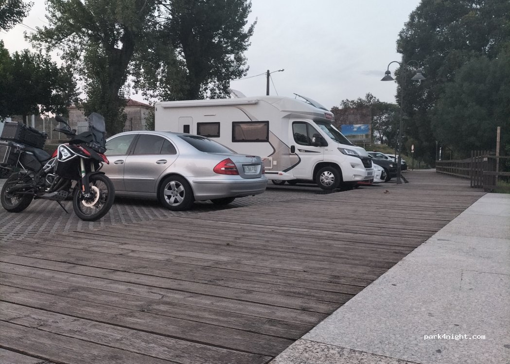 Le parking est idéalement placé en face du Rio Minho. Nous sommes arrivés un vendredi en fin d'après midi et il ne restait qu'une place. Le vendredi soir et le samedi le parking est toujours plein et il y a beaucoup de passages de voitures et piétons car c'est en face du club d'aviron. Sinon on peut facilement visiter la magnifique ville depuis la. On peut remonter les rives du fleuve en VTT