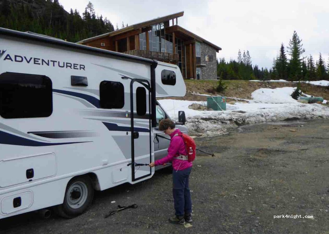 Grand parking près du domaine skiable du mont Washington. Aucun signe que les nuitées ne sont pas autorisées. Point de départ pour de belles randonnées.