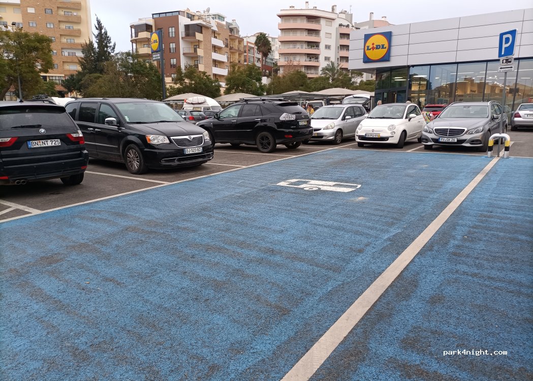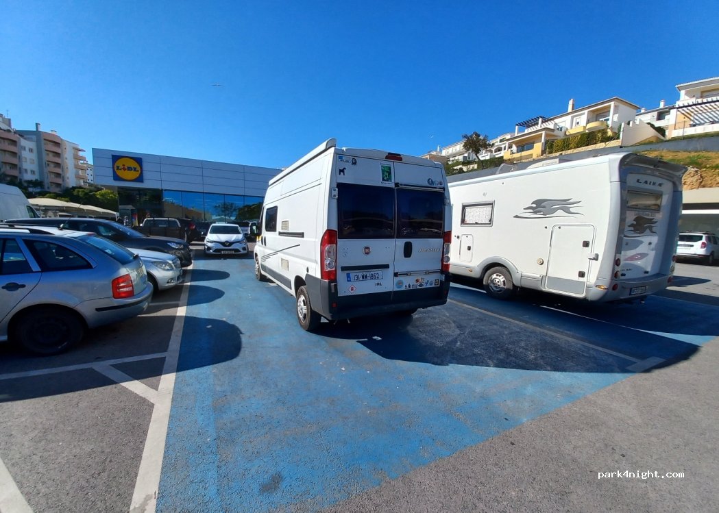 Como siempre en Portugal los aparcamientos para AC en los LIdl no defraudan. Hay pocas plazas para AC pero hay unas cuantas q dan a una zona ajardinada donde (metiéndola marcha atrás) la zona q sobresale no ocupa y solo usas una plaza. Cerca hay un restaurante italiano OLIVA que hace unas pizzas espectaculares, caseras y a muy buen precio. Muy recomendable!!!