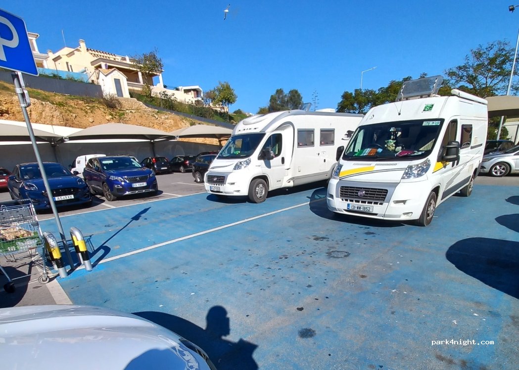 two very large campervan spaces in Lidl. directly opposite entrance, easy access. no services and shame only two. we used them to do our foodshop. May be OK to stay overnight, but it's a small car park, I wouldn't want to take up a space to leave and walk into Lagos sightseeing, day use for foodshop.