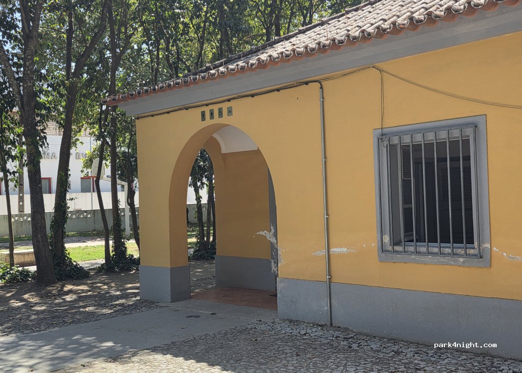 Parking en ville, terrain en pente et les toilettes sont dans un parc public qui ferme de 18h à 8h du matin