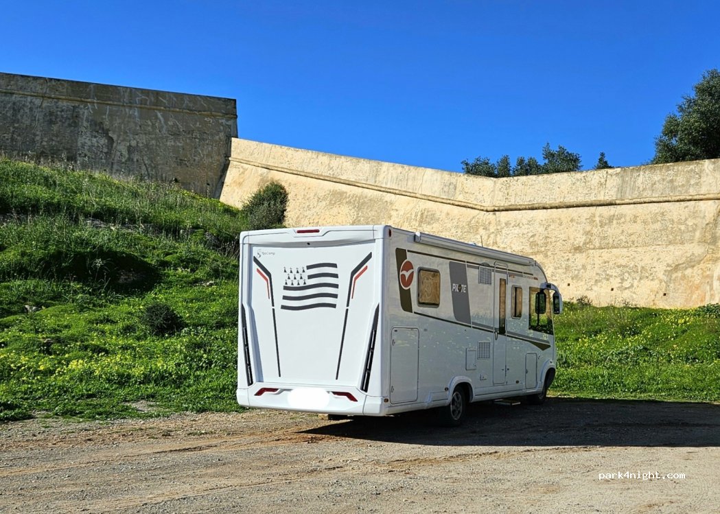 Merci à la municipalité de nous accueillir. Aire en bord de route un peu bruyante. Pas d'ombre. Proche du centre pour visiter les remparts avec beau panorama et prix modique. Pour les services la borne à eau est cassée. Possibilité de vidanger les eaux sales mais sur une seule grille car l'autre est totalement defonçée.