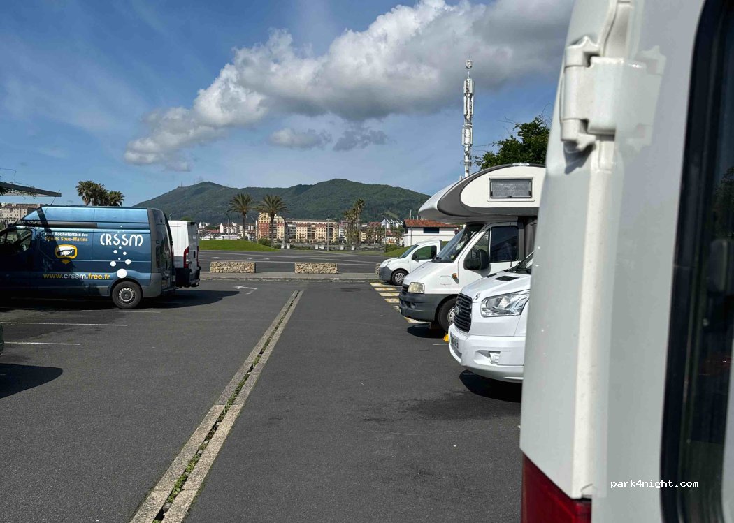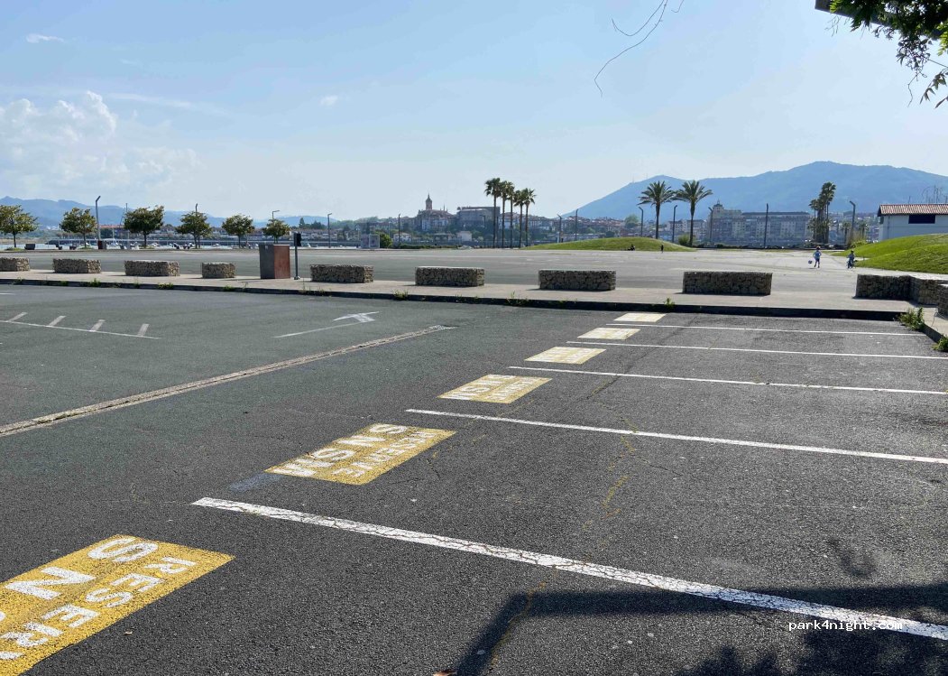 Avons passés 2 nuits ,excellent, calme. Emplacement parfait pour visiter la ville, port de plaisance à proximité . Je confirme gratuit en cette période , les horodateurs sont couverts. Faire Hondarribia très joli, navette sur le port. Faire aussi le Domaine d'Abbadia ( direction Saint Jean de luz) vues splendides.
