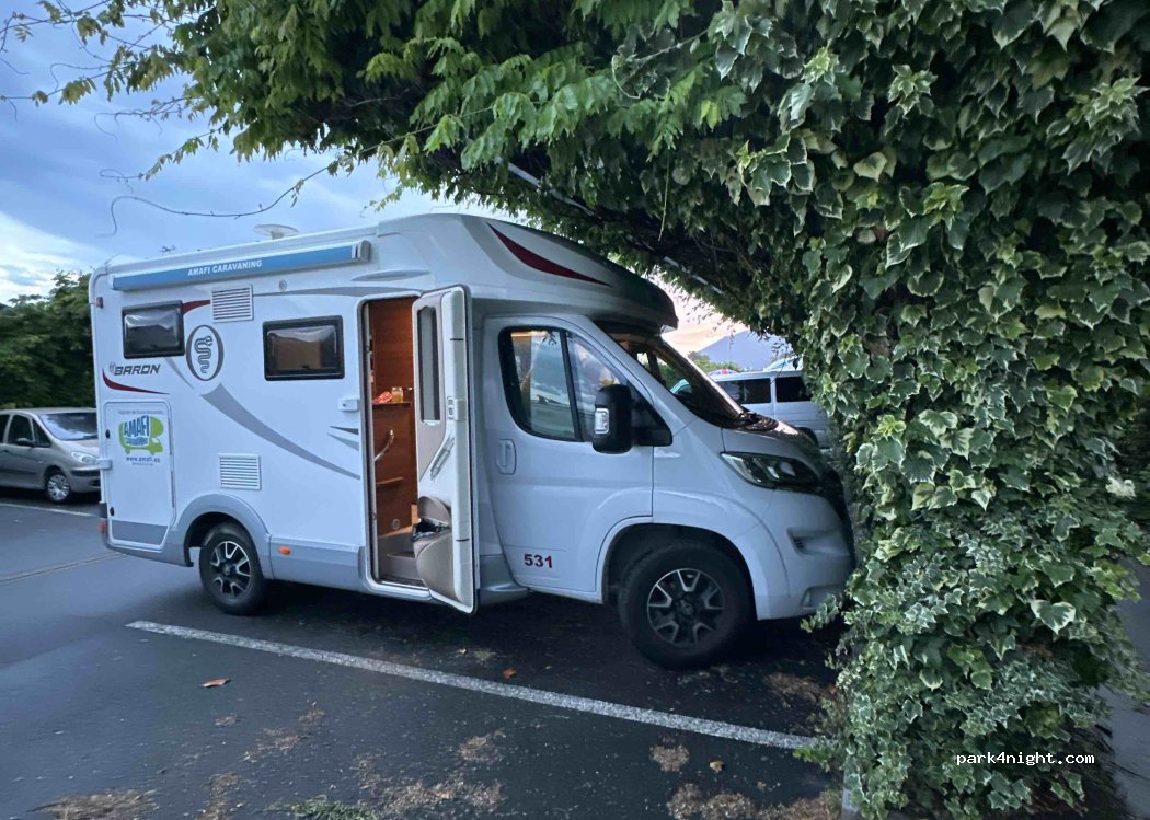 Bon parking, calme en face du décathlon. Prendre la deuxième entrée au fond à droite avant la barrière si comme nous vous dépassez les 2m.