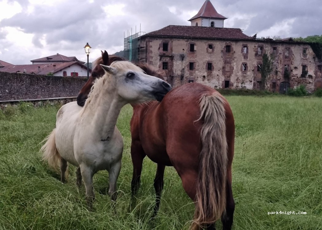 joli parking dans un très joli village . nous étions à côté du fronton. comme déjà dit, attention à ceux qui ont les oreilles sensibles les chevaux ont des grosses cloches autour de leur cou... ou alors pensez aux bouchons d oreilles vous serez tranquilles .