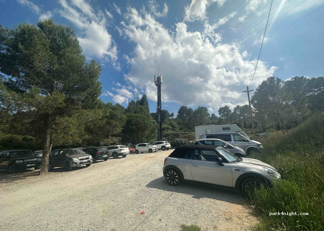 Parking de Tierra justo al lado de la parada de tren. Una zona para llegar a Barcelona. En 20 minutos estás en el centro. He visto varias veces furgos y parece que no hay problema de momento...
