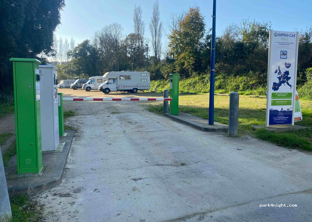 Endroit sympa pour une nuit ou plus, mais attention ce n'est pas un parking réservé au camping-car comme pourraient le penser certaines personnes qui éjectent les automobilistes ou qui s'installent avec auvent chaises et tables. C'est avant tout un parking véhicule. Aire de services fonctionnelle. N'hésitez pas à aller manger à la crêperie juste à côté. Excellent rapport qualité prix.