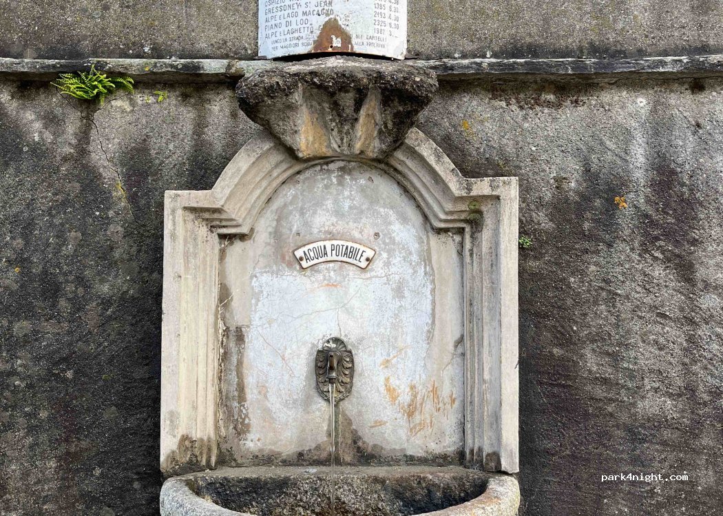Fontanella con acqua potabile sotto la chiesa di Riva Valdobbia.