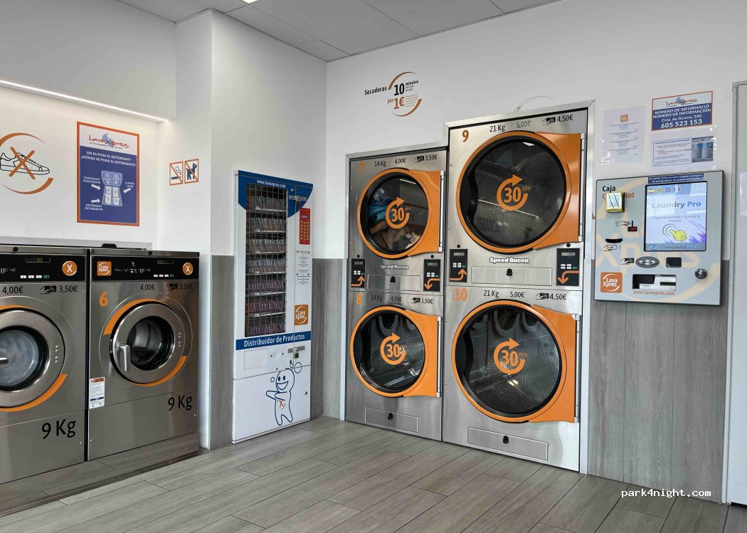 Lavandería en centro comercial. Muy cerca de parking de autocaravanas. Se puede acercar andando