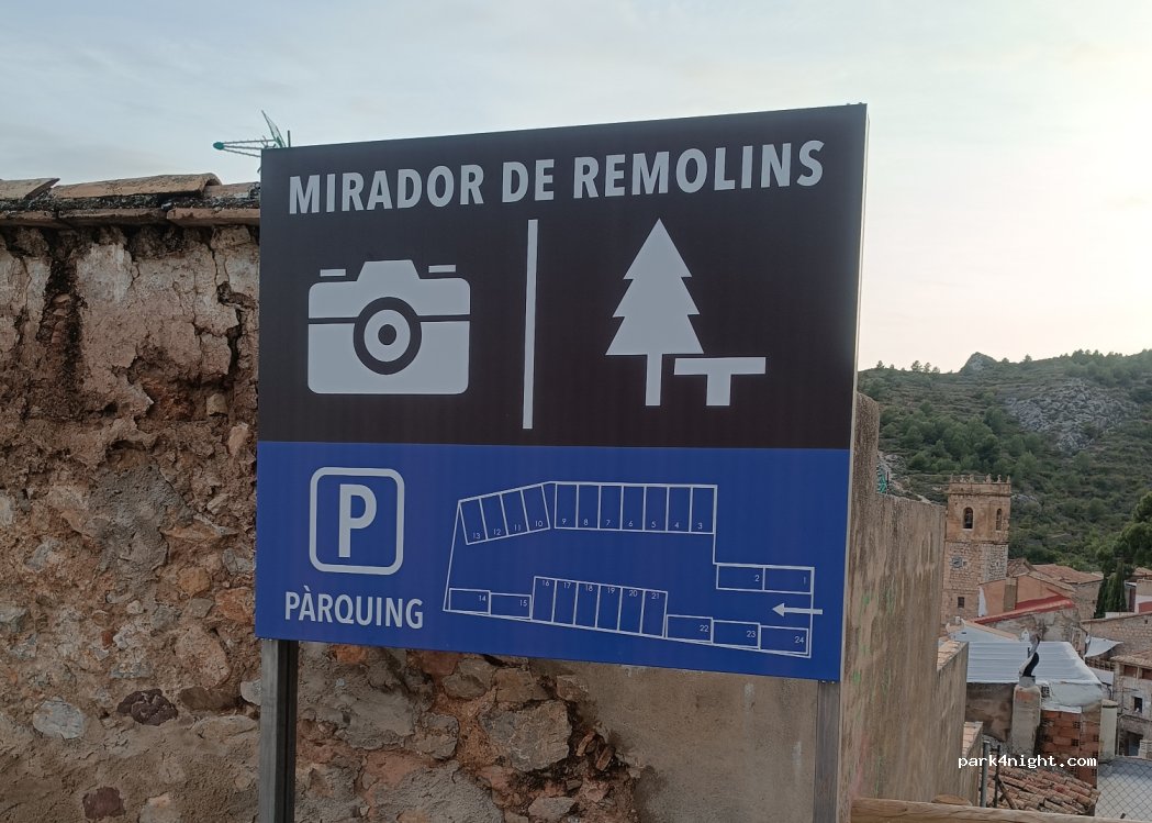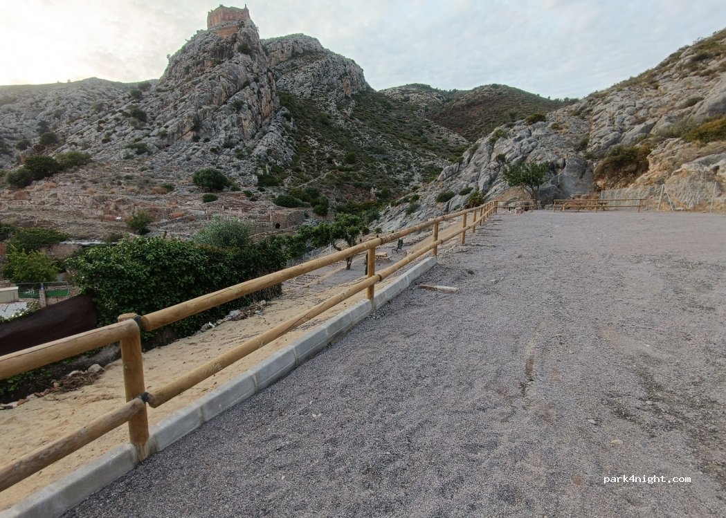 Lugar tranquilo, bien nivelado, con sus mesas y una papelera, por la noche se está fresco, por el Día un infierno, no apta para furgonetas grandes por el acceso que tiene, calles estrechas y de mucho giro.