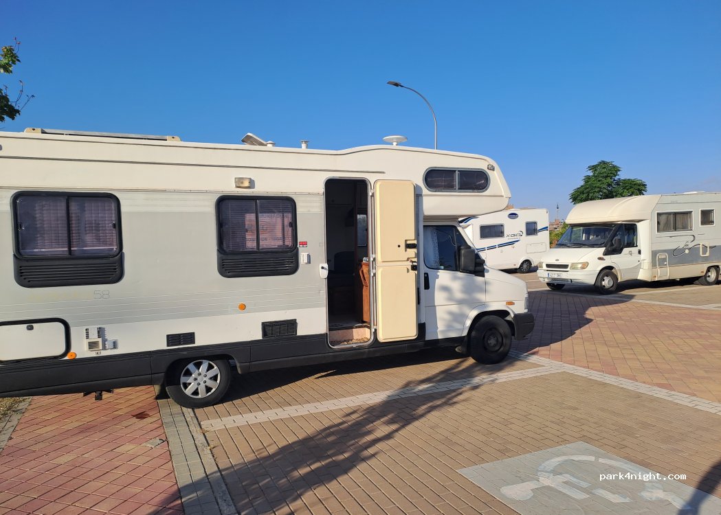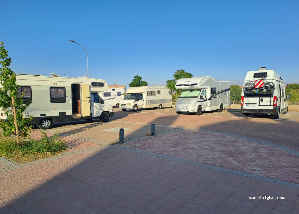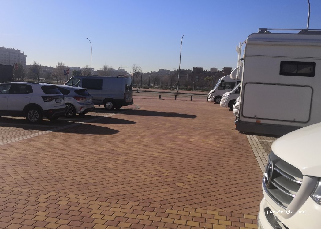 Ausreichend Parkplätze zum Übernachten, sehr ruhige Gegend im Viertel Vallecas, außer einigen Mülleimern gibt es keinen Service.