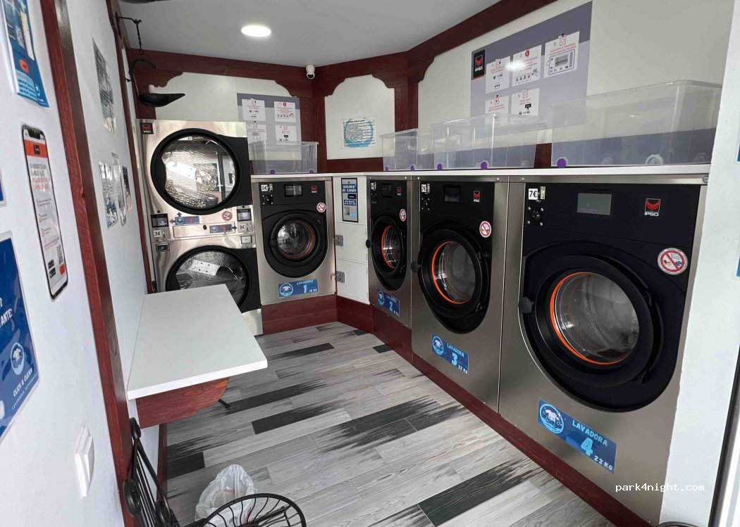 Pas trop facile de ce garer en camping car. Laverie très propre et récente.