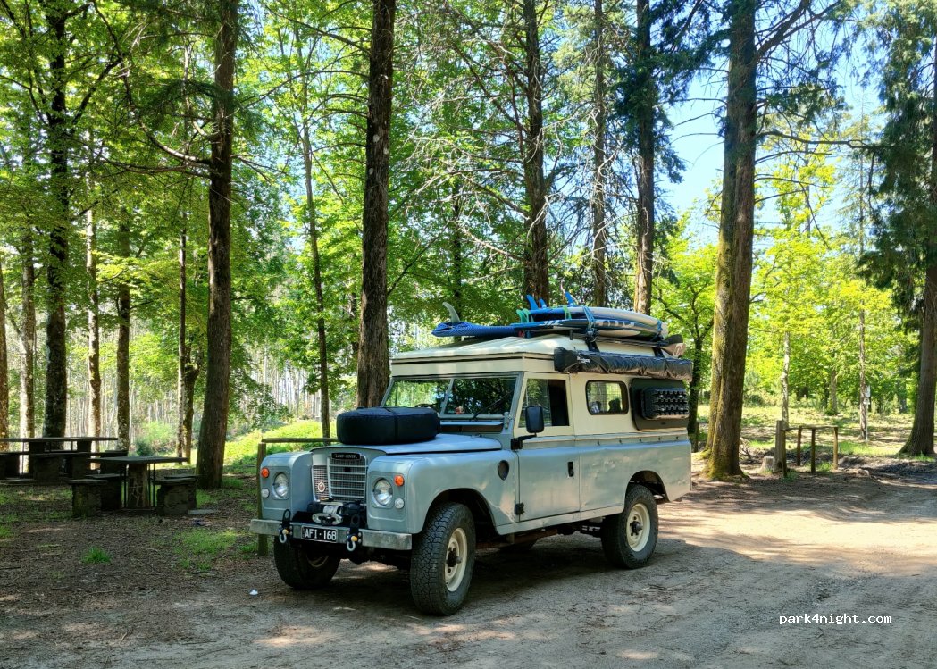 Super spot dans la forêt, en pleine nature ! Accessible facilement en grand camping-car (>7m). Nous y avons passé une nuit, sans personne à côté. Super calme ! Attention : services sur place ne non fonctionnels : eau non potable (résidus visibles), WC bouchés et bbq sales (avec de vieux mouchoirs en papier douteux dedans)... Dommage, mais ça reste un super spot pour dormir dans la nature !