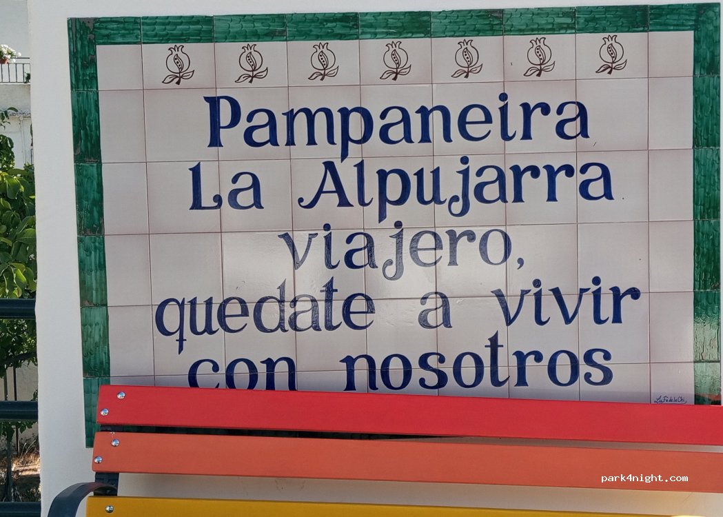 Parcking bueno para conocer los pueblos de la Alpujarra. esta iluminado, tienes una fuente, buenas vistas y el pueblo justo al lado si quieres cenar. por ponerle algún apega que está al lado de la carretera y se oyen los coches a primera hora pero para una noche de paso por la zona está bien. nosotros subimos desde Mojácar y paramos en la Rabita recomendable Bar la Pozolera, muy buenas tapas.