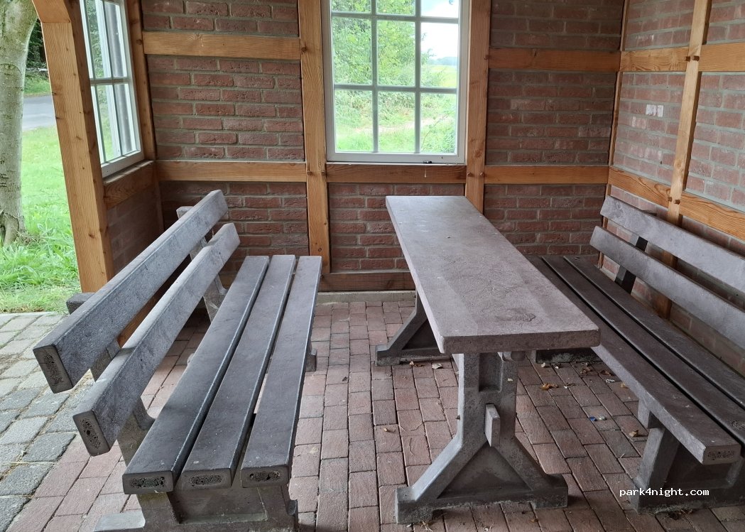 Graag had ik voor mede camperaars nog een foto willen toevoegen. Helaas kan ik geen foto meer toevoegen. Er is namelijk een nieuw huisje neergezet! Op de foto staat een oud huisje op dit moment. Een fantastisch leuke plek om te picknicken en ook nog overdekt, niet ver van de snelweg! Verderop staan wilde appelbomen. Heerlijk ook nog eens een appeltje voor de dorst :-)