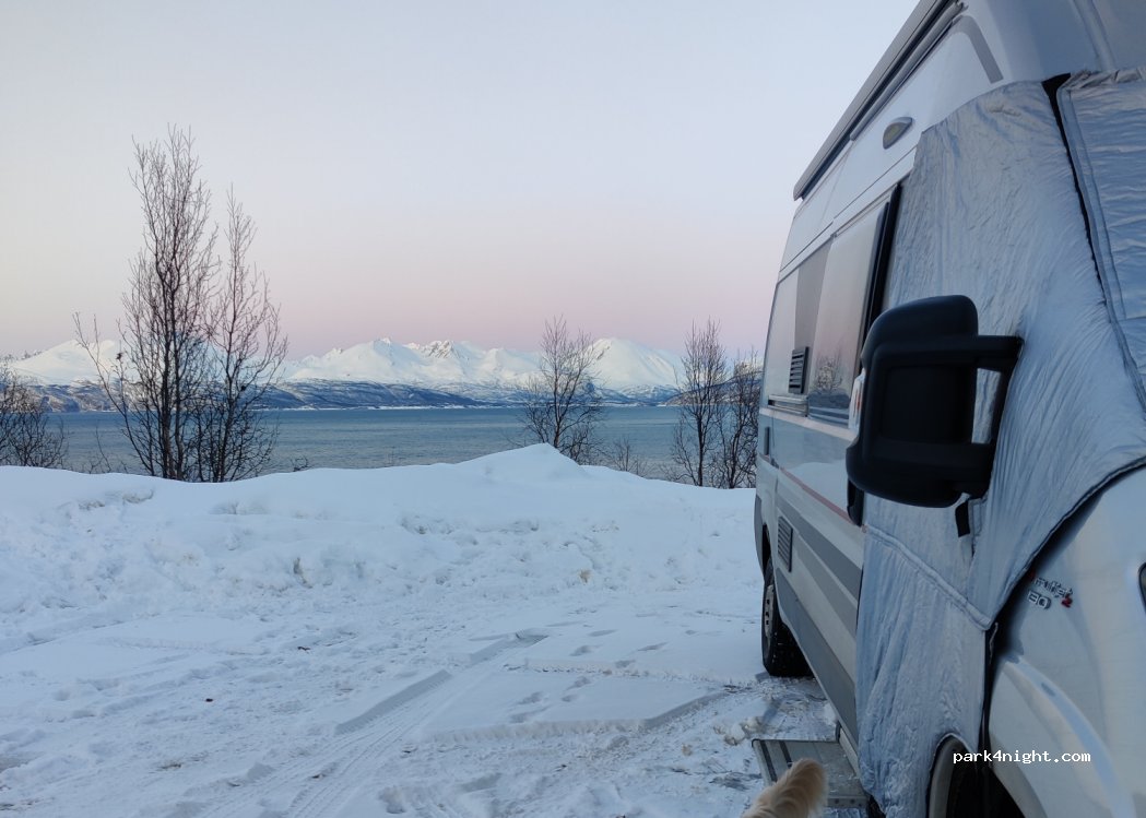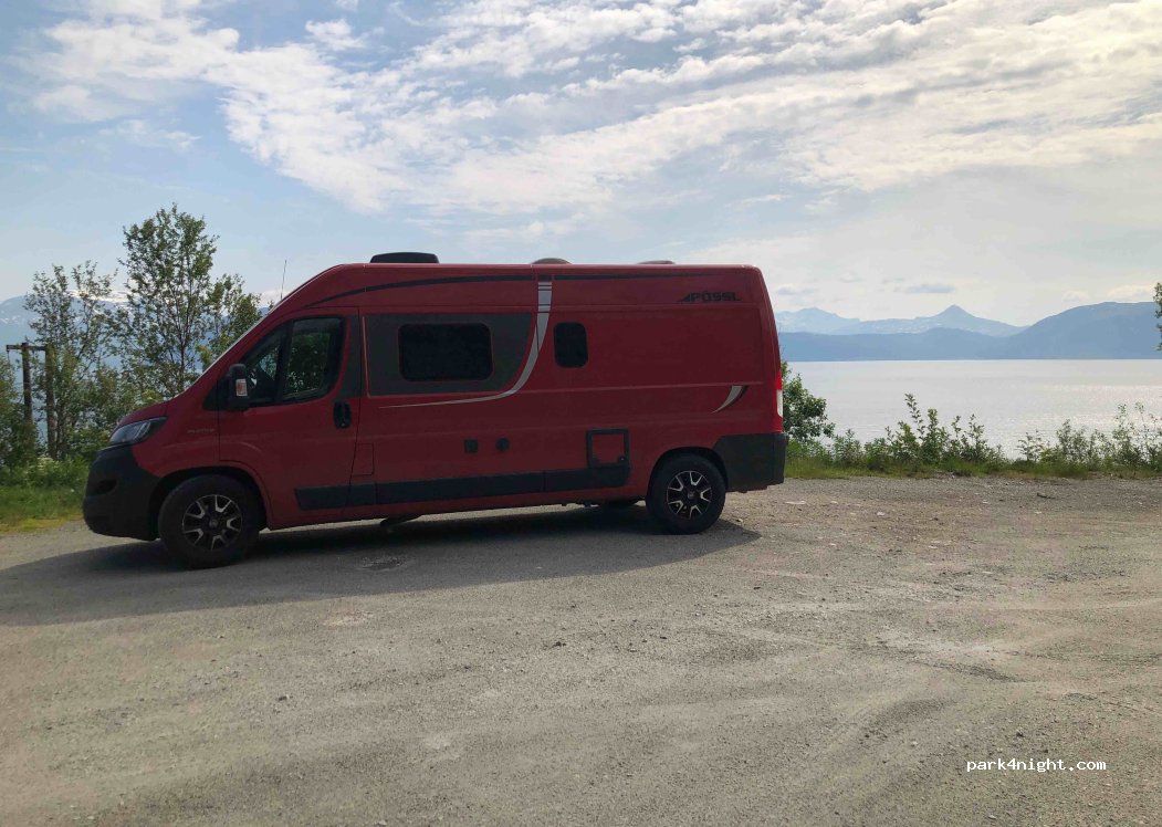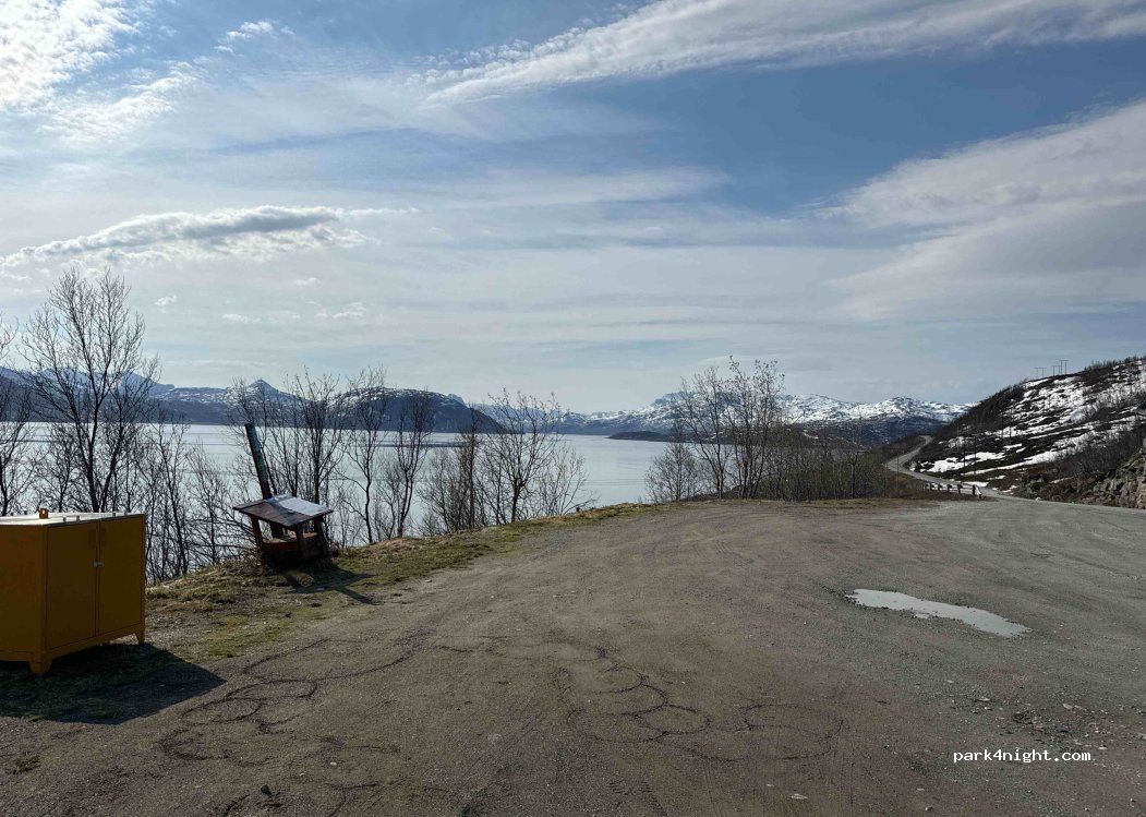 Dieser Parkplatz war für uns perfekt. Hier konnte man auch schön die Nordlichter beobachten. Standen 2 Nächte hier. Uns hat der Verkehr nicht gestört. Wer Lärmempfindlich ist für den ist der Platz nichts. Da auch noch um Mitternacht LKW's unterwegs waren.