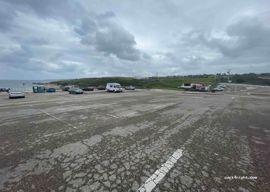 Un poco desnivelado, es un parking enorme, sin sombra, han venido algunos coches que pasan a mucha velocidad, precaución con esto, la playa es preciosa