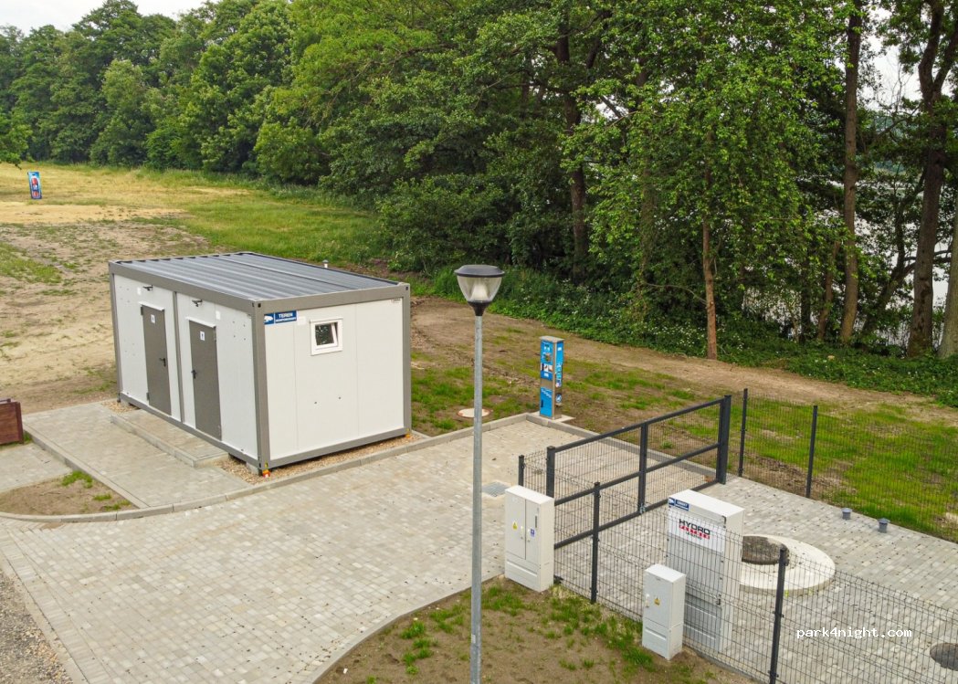 Clean and well maintained toilets with a free shower. Hot water from a boiler, so first come, first served. A single spot for the gray water dump and a column for toilet casette disposal - all free. Water supply 1 PLN/10 liters, electricity 1 PLN for 15 mins - the pylon has 6 outlets and is 50 meters to the left from the toilets. Card terminal still not-operational, only coins.