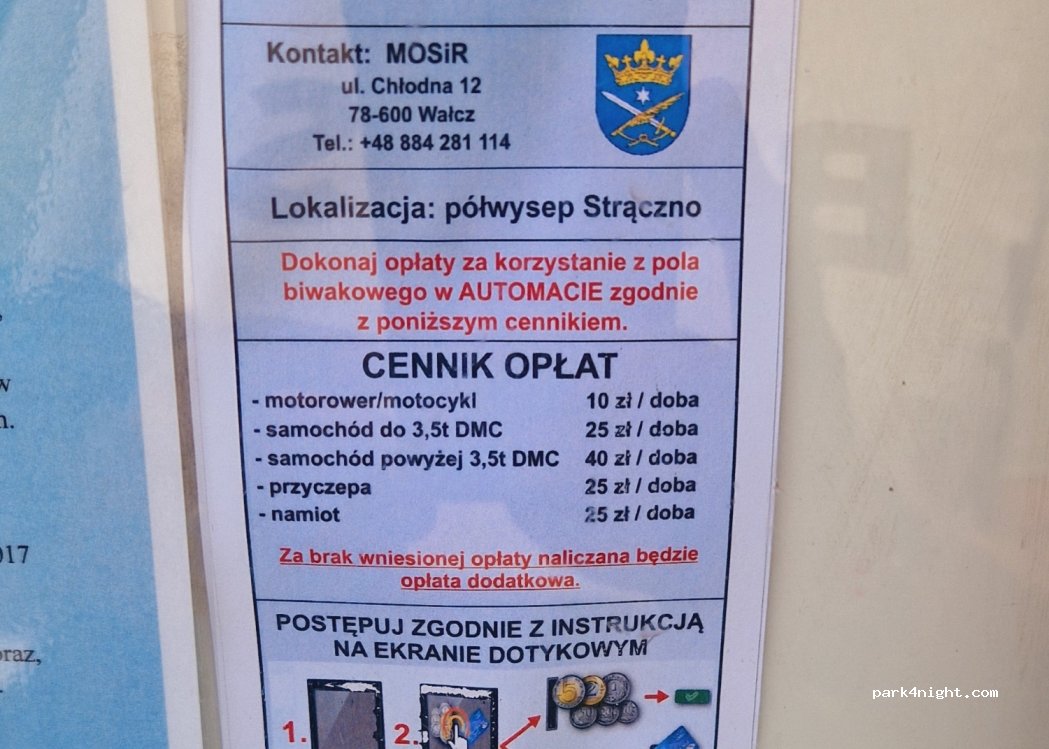 Świetne miejsce, od 15.04. do 15.10. postój płatny 25zl / doba, do tego prysznic 5zł, kamper system (woda 1zl/10l, prąd 1.5zl/h), dostępne jest również ujęcie wody pitnej z ręcznej pompy. Toalety darmowe, utrzymane bardzo dobrze. Plac zabaw dla dzieci, wiaty oraz miejsce na ognisko.
