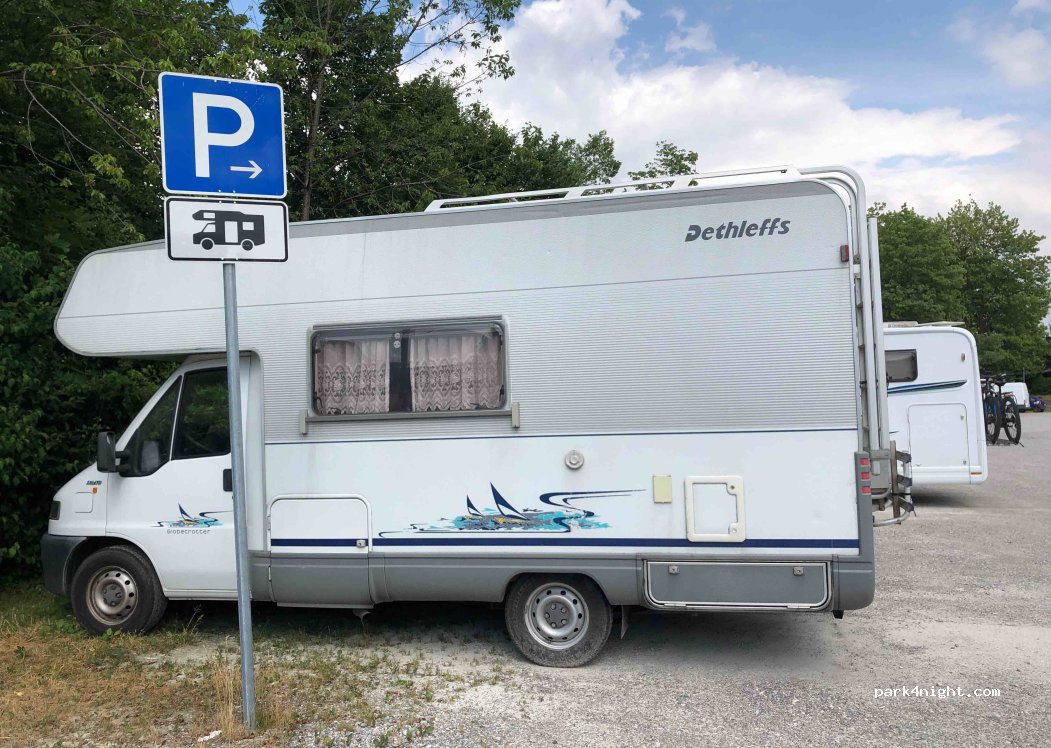 Good city camper parking. Off season the night was quite calm and found a spot even in the evening. Nearby shops and city centre. There is a toilet in Edeka supermarket building.