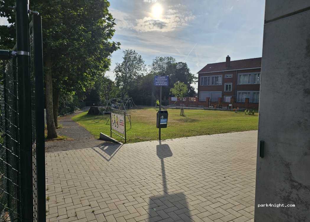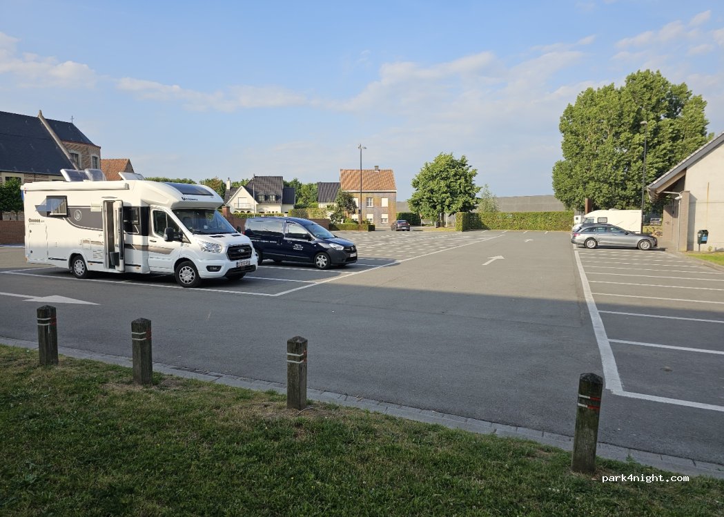 Rustig parkeren in een klein dorpje met picknicktafel. Speeltuin achter het gebouw. Cultureel centrum en lokalen van de jeugdbeweging. In het weekend kan het overdag luidruchtig zijn. Mooi wandelpad achter het gebouw. extreem stil 's nachts. Alleen de klokken luiden elk half uur.