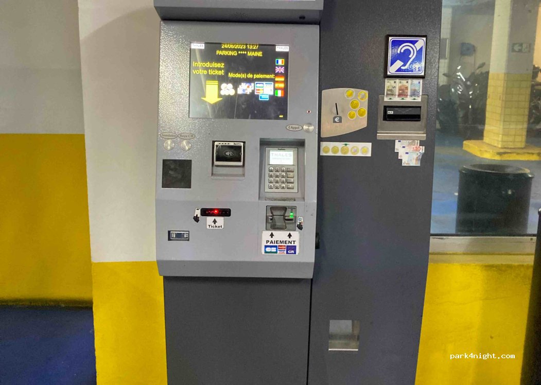 Public parking 24 hours. that you can enter with a Van Camper if you are less than 2.10m. height, perfect place to park for a normal price, close to the center of Paris, take a good look at the location because there are several, this is called Parking Maine Montparnasse.
