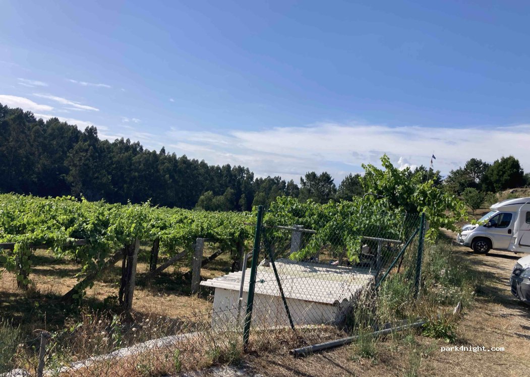 Un camper park nuevo. Lugar tranquilo y acogedor, entre viñedos? El terreno es plano. Todos los servicios y espacios muy limpios. Los propietarios son muy amables y serviciales, te sientes como en casa. Hemos comprado vino albariño de su propia cosecha y huevos de sus gallinas. Sin duda repetiremos !!
