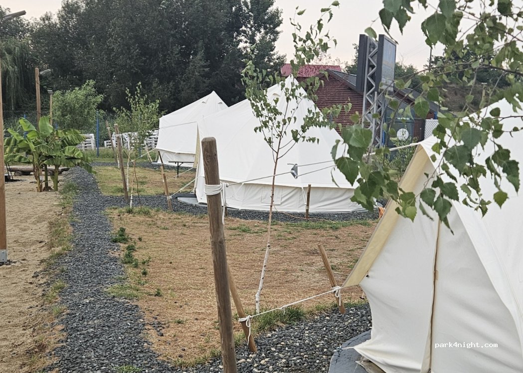 Kleiner Campingplatz direkt am Lake Ghioroc (Platz am Strand, Baden möglich) 5 Glamping Zelte, zelten möglich. Küche, Kühlschrank, Sitzgelegenheiten, Grills, Volleyballplatz, Pool für Kinder. Inhaber sehr bemüht. z.Z. Nur 1 Dusche + 1 WC -> daher ein Stern Abzug - weitere Sanitäreinrichtungen geplant. 3 Min Fußweg zum öffentlichen Strand, wo Wasser etwas sauberer ist + Bars und Restaurants sin.