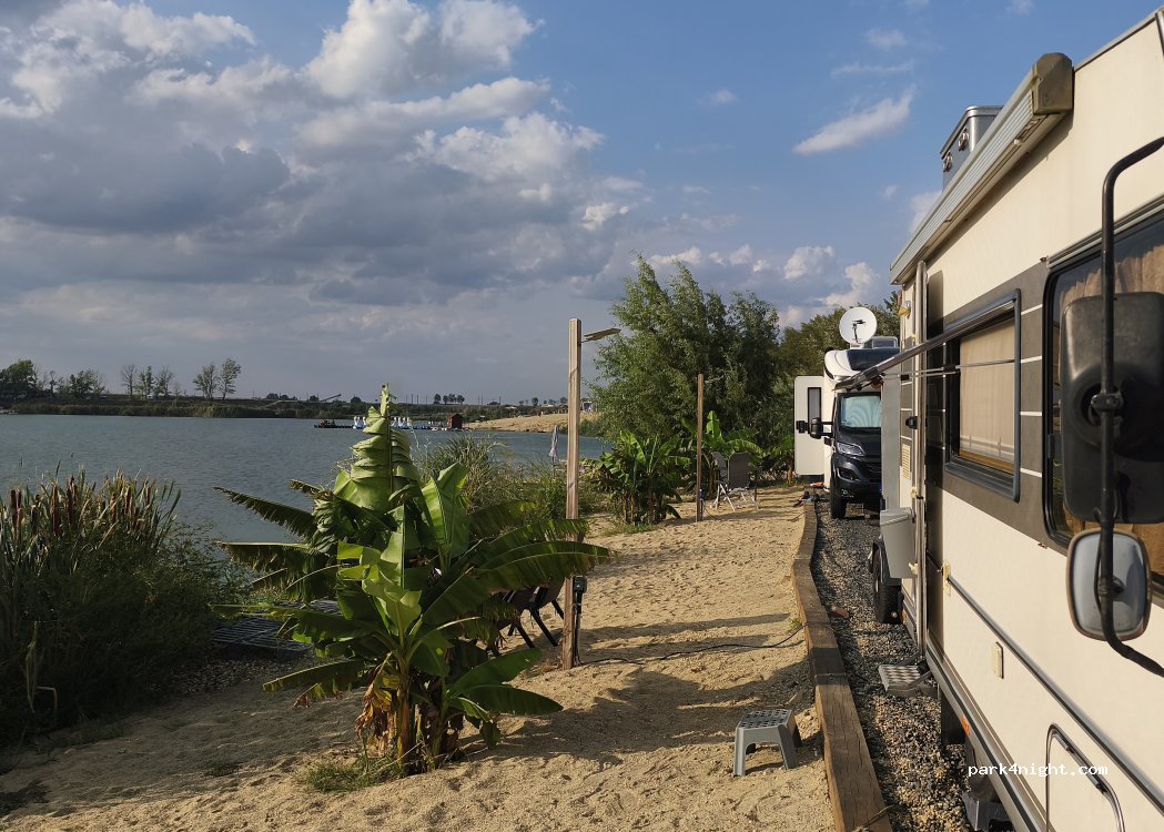 Sehr kleiner Platz am Baggersee, alles ordentlich, neu, sauber, freundlicher und engagierter Betreiber. Nachts ist das Gelände geschlossen und bis auf die Seeseite eingezäunt. Die ganze Gegend ist jedoch sehr künstlich, der Baggersee wird in ein kleines Strand-Palmen-Paradis verwandelt. Muss man mögen.