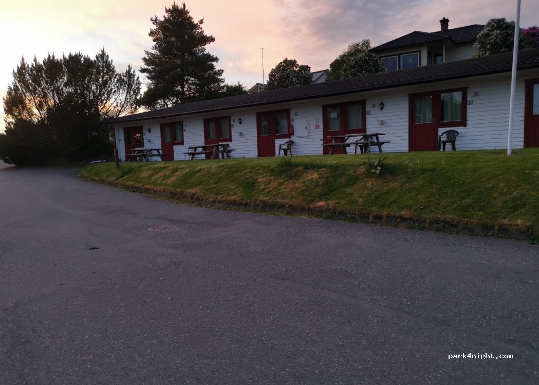 Asphaltierter Platz vor einem Motel, mit Stellplätzen für Wohnmobile und Wohnwagen. Einfahrt !sehr! eng. Kaum Rangiermöglichkeiten. 270NOK für einen 6.3m Van 2 Personen ohne Strom. Mit Strom 290NOK. Küche, Duschen, Waschmaschine, Trockner vorhanden. Dusche 10NOK 6min. Bushaltestelle und kiwi nicht mal 5min zu Fuß. Wer allerdings viel grün möchte, der ist hier definitiv falsch.