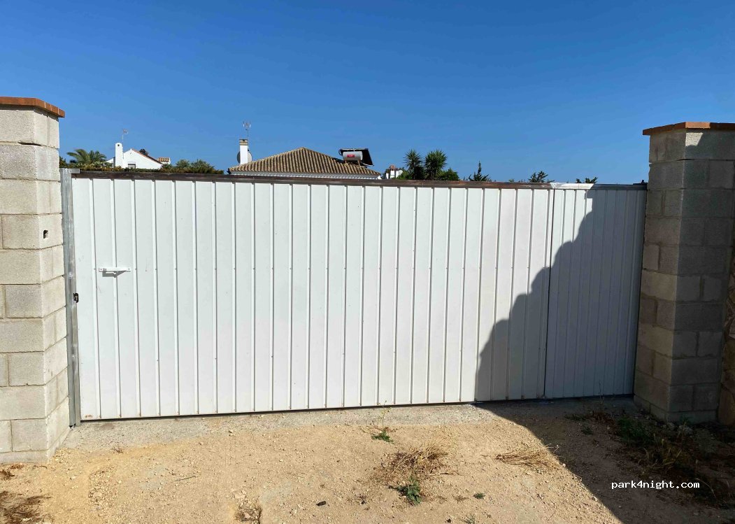 Wir verfügen über einen Wohnmobilparkplatz in der Gegend von El Palmar (Cádiz). Das Grundstück befindet sich in Carril de los Guerreros, nur 5 Gehminuten von den wunderschönen Stränden entfernt. Der Parkplatz ist in Stellplätze für zehn Fahrzeuge unterteilt und zusätzlich durch ein Tor gesichert, für das jeder Mieter einen eigenen Schlüssel besitzt. Dieses Jahr haben wir auf jedem Stellplatz einen Beleuchtungspunkt und auf allen Stellplätzen Kunstrasen. Die Stellplätze sind geräumig und sehr komfortabel.