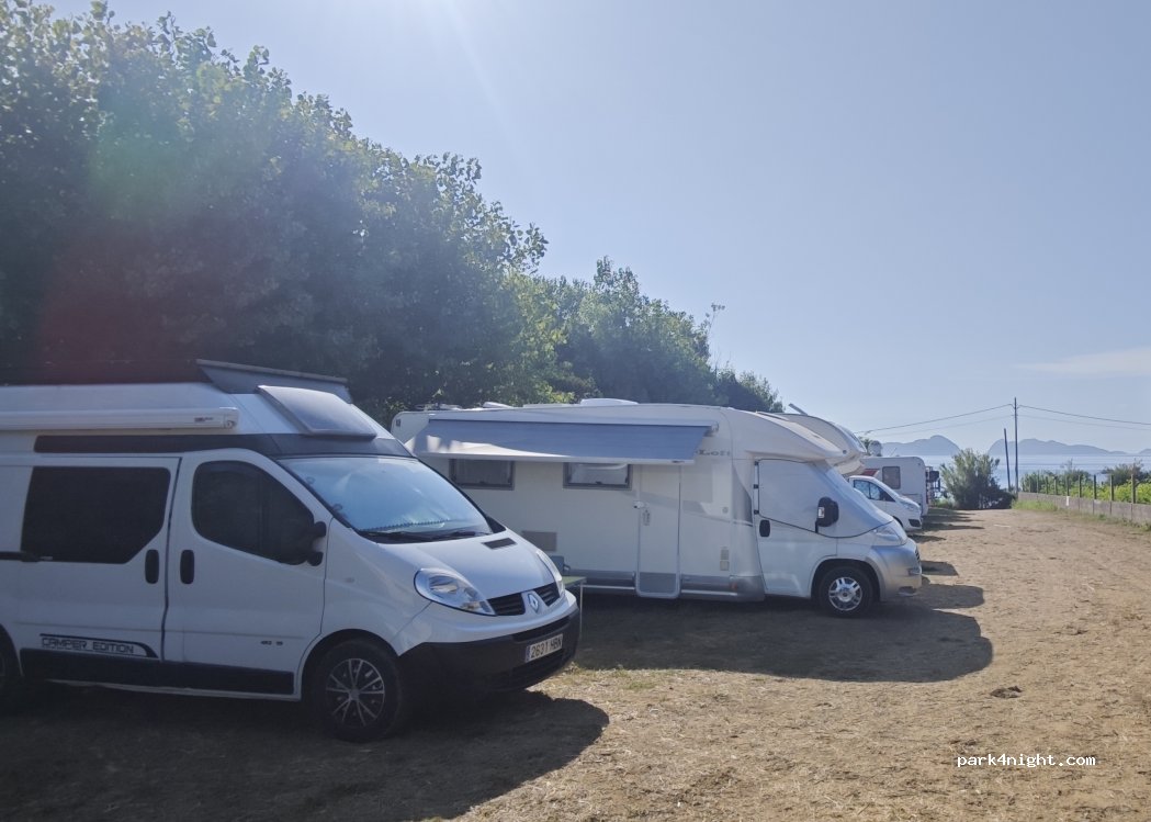 ● 10€ per 24h with no services at all. ● Large vehicles can find some difficulties on entry as there are a lot of cars parked outside along the parking area. ● the beach is 50m far