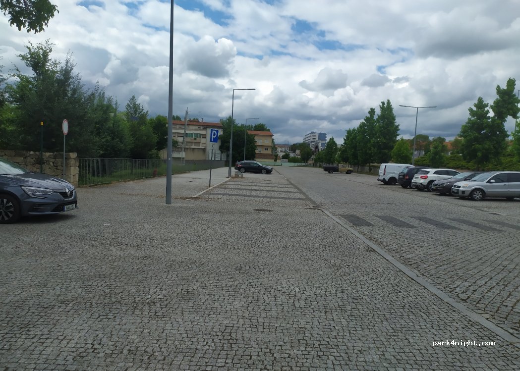 Local muito sossegado, junto ao rio, a um caminho romano e ao museu de arte contemporânea Nadir Afonso. É um parque de estacionamento mas, ao contrário de outros parques na cidade, não tem sinais (ainda que alguns ilegais) que proíbam. Recomendo.