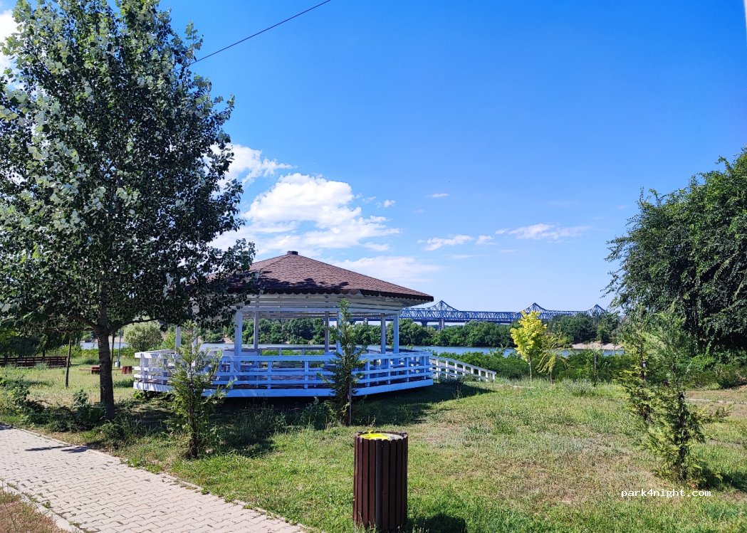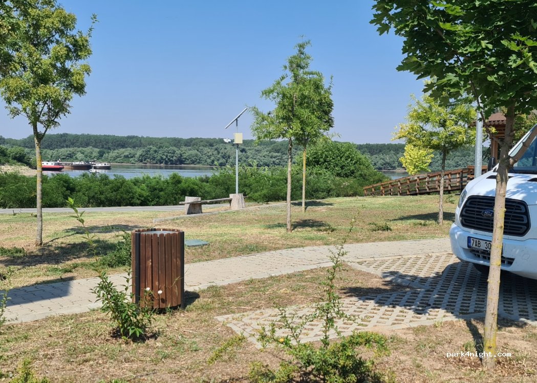 Netter Park mit Parkmöglichkeit auf Rasensteinen. Wir waren mit einem 7.5m Womo vor Ort und blieben eine Nacht. Schöner Ausblick auf die Donau und dem Schiffsverkehr. Dixi-WC am Ende des Parks. Sitzgelegenheiten sind im Park vorhanden. Gebührenfrei