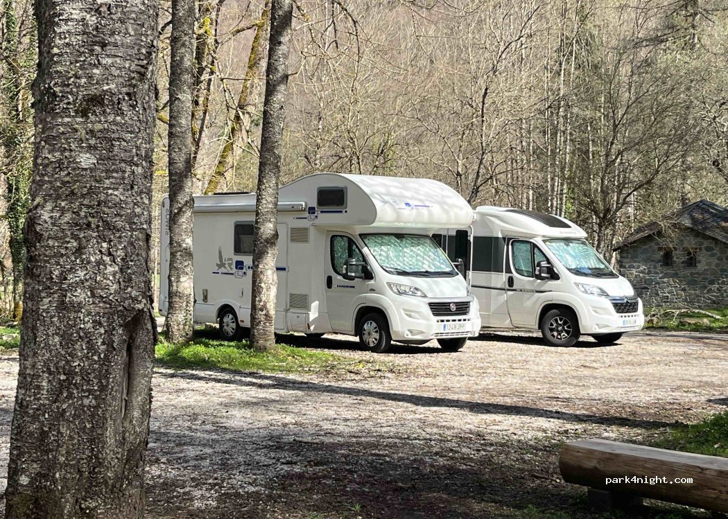 Endroit très agréable et quasiment plat. Convient pour les grands camping-car. Toilettes très propres accessibles à tous. préservons cet endroit!!. proche de la rivière pour les pêcheurs et des départs de randonnées pour les promeneurs. Nous y avons passé une agréable nuit. l'accès y était encore gratuit au 15/06. espérons que cela continue...