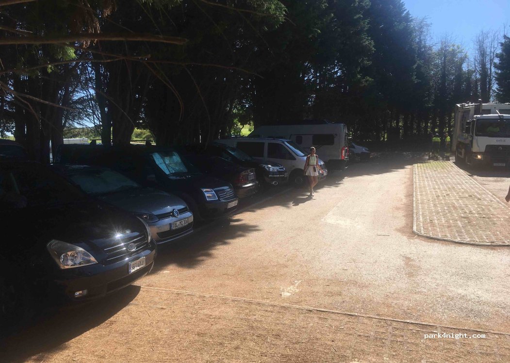 Lugar adecuado para pernoctar. Aquí sí es legal dormir y aparcar. Lo ideal es llegar sobre las 20:00-21:00 y coger sitio. Dotado de basuras y ducha de agua fría cerca