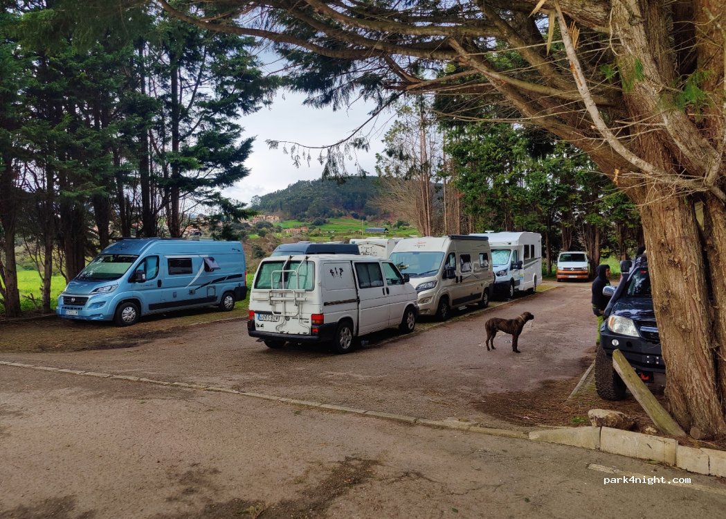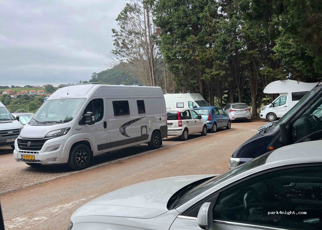 prohibido pernoctar, pertenece al parque natural de oyambre, más claro no se puede decir.Los responsables de las campas que se usan de parking, ya se lavan las manos...explicaciones a la policía.La gente abusa, la pernocta puede pasar, pero durante el día, todos acampados, sillas, mesas, cocinando...lo he.os conseguido de nuevo, prohibido pernoctar.